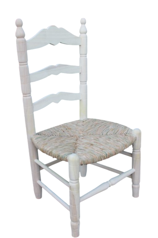 Silla costurera colonial de madera con asiento de nea en natural