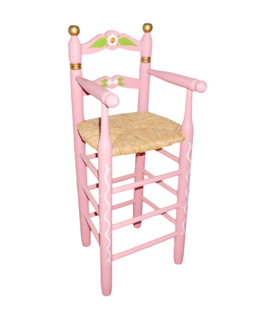 Trona de niño con asiento de nea decorada en color rosa